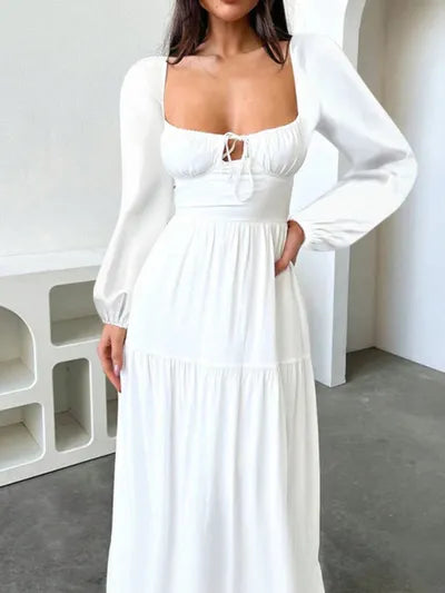 Aemi + Co Ruffled Hem Square Neck Balloon Sleeve Mini Dress