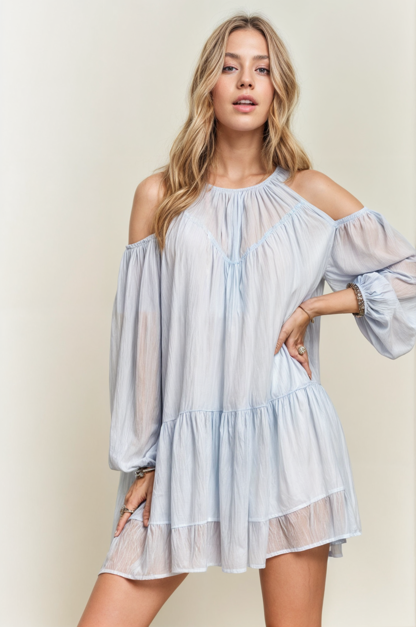 ADORA Cold Shoulder Balloon Sleeve Mini Dress
