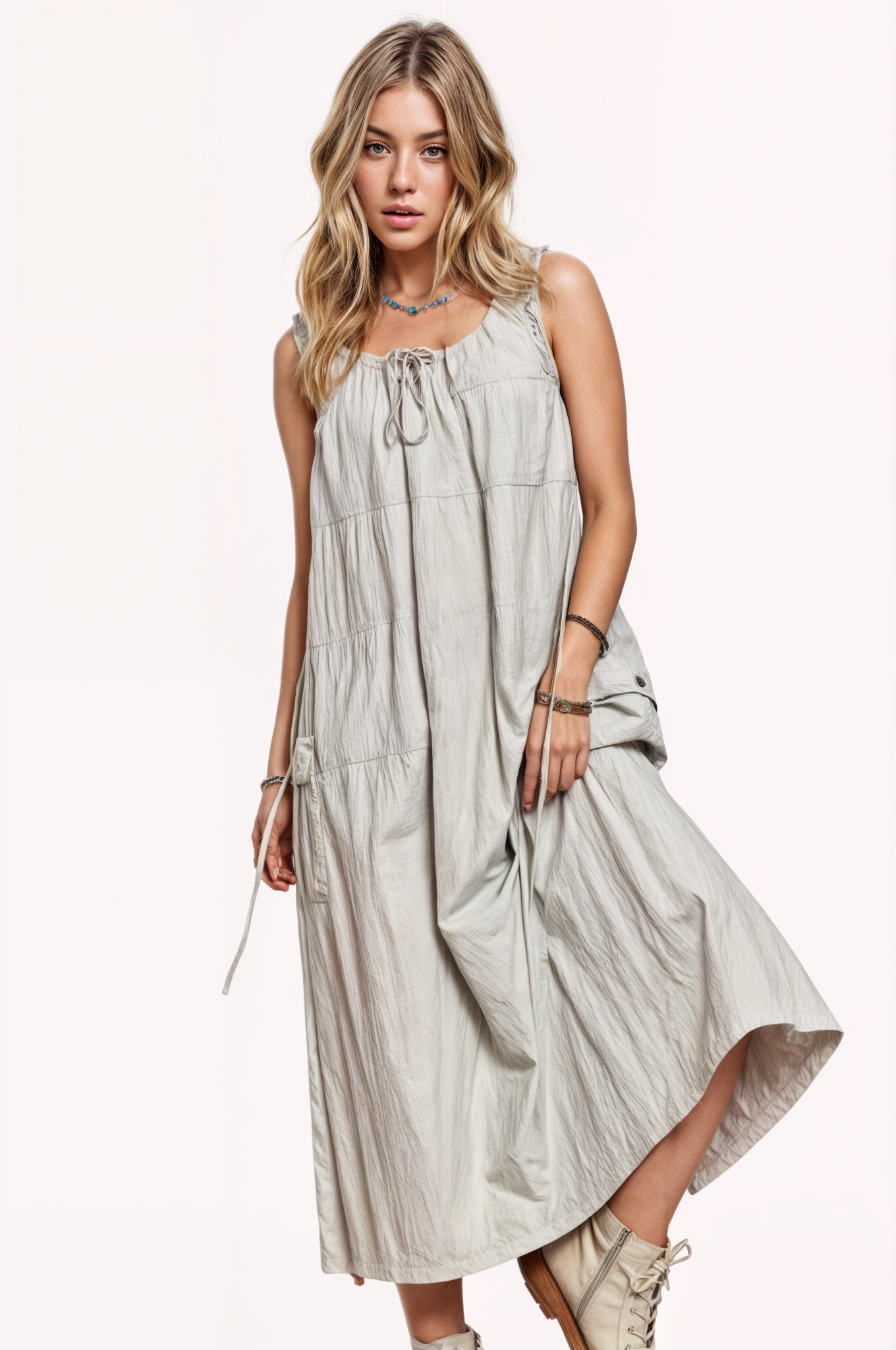 Perfee Tied Pleated Printed Cap Sleeve Dress
